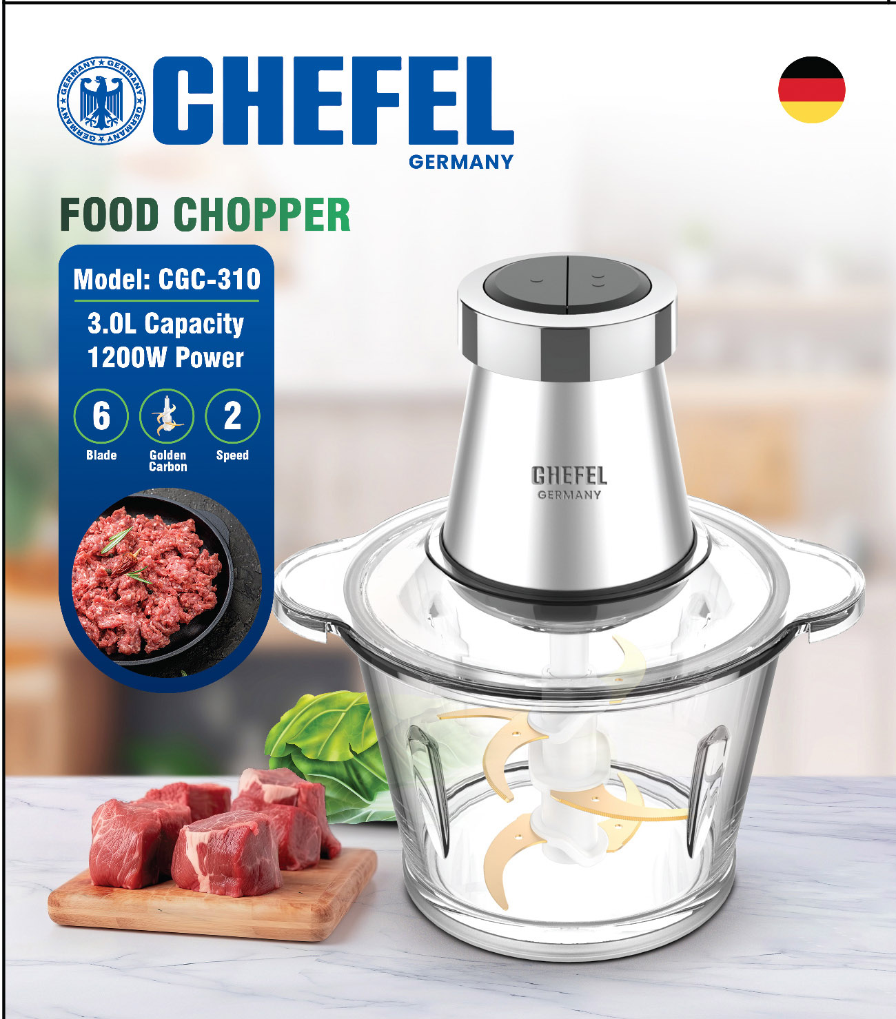 دارای: دو مجموعه تیغه دو سطحی برای غذای کودک، گوشت و آجیل، سبزیجات و صیفی جات
